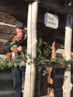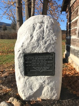 Richard Bailey’s patriotic service in building the Davidson-Bailey Fort is recognized by the Sons of the American Revolution. While the stockade and other buildings are long gone, one log structure of the fort is still standing and is a historical site in Bluefield VA. Below are pictures of Ellis Bailey and his grand-dog, Bailey, at the “Bailey Log House,” the remains of the Davidson-Bailey Fort.