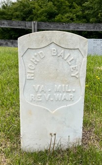 Richard Bailey died in 1818 and is buried in a small family cemetery in Bluefield VA.